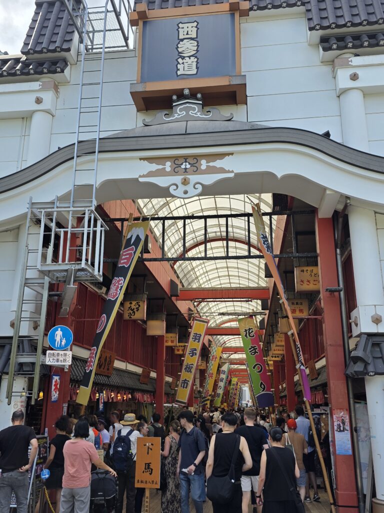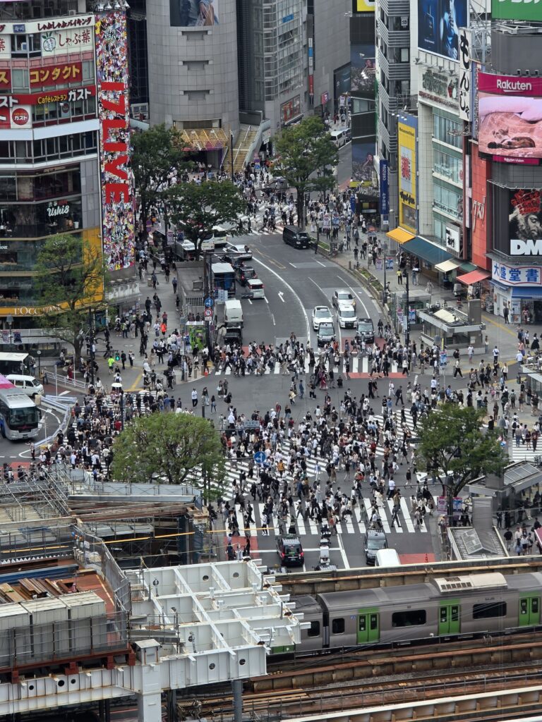 Another day we took the train to the Daikanyamacho neighborhood which has kind of a Brooklynlike feel. The quiet neighborhood has several higher-end shops, bookstores and restaurants. Our friends who have been to Tokyo before recommended the restaurant Ivy Place and it did not disappoint. We were able to squeeze in for breakfast even though we didn’t have a reservation and the food was delicious. I had an omelet and Dave had pancakes that were lighter than air. Of course we ate it up before I remembered to take a picture. After breakfast, we walked around and found Spring Valley Brewery where we popped in for a pint. Dave, as I mentioned, is working Central Standard hours and tries to go to bed around 1pm so he headed back at that point and I decided to make my way to Shibuya to see the famous Shibuya Scramble Crossing. I did a little research, for those of you who haven’t heard of it, to give you an idea of how busy this crossing is. “Shibuya Crossing sees approximately 2 million to over 2.4 million pedestrians daily, with up to 3,000 people crossing at once when the lights change. This makes it the world’s busiest pedestrian crossing.” (Google) Dave had told me about this building there where you can see the crossing for free so I made my way to Shibuya Hikarie’s 11th-floor Sky Lobby and took in the sight from a safe distance away. I finished my day on Takeshita Street, which is famous as the iconic, youthful heart of Harajuku in Tokyo. It was the Autumnal Equinox holiday and the pedestrian street was packed. It felt very reminiscent of the State Fair but with much narrower streets. I only made it a couple blocks before I had to make my way home, it was just too crowded. I was exhausted after the very full and wonderful day.