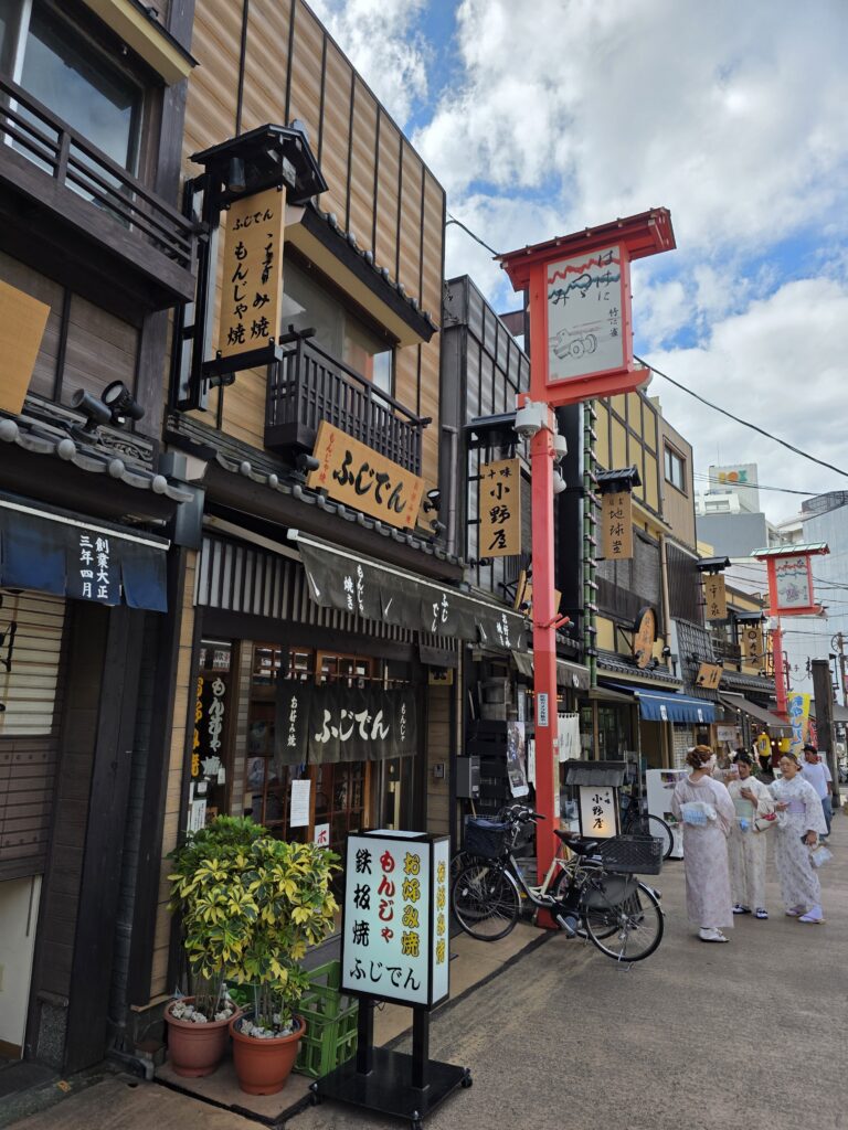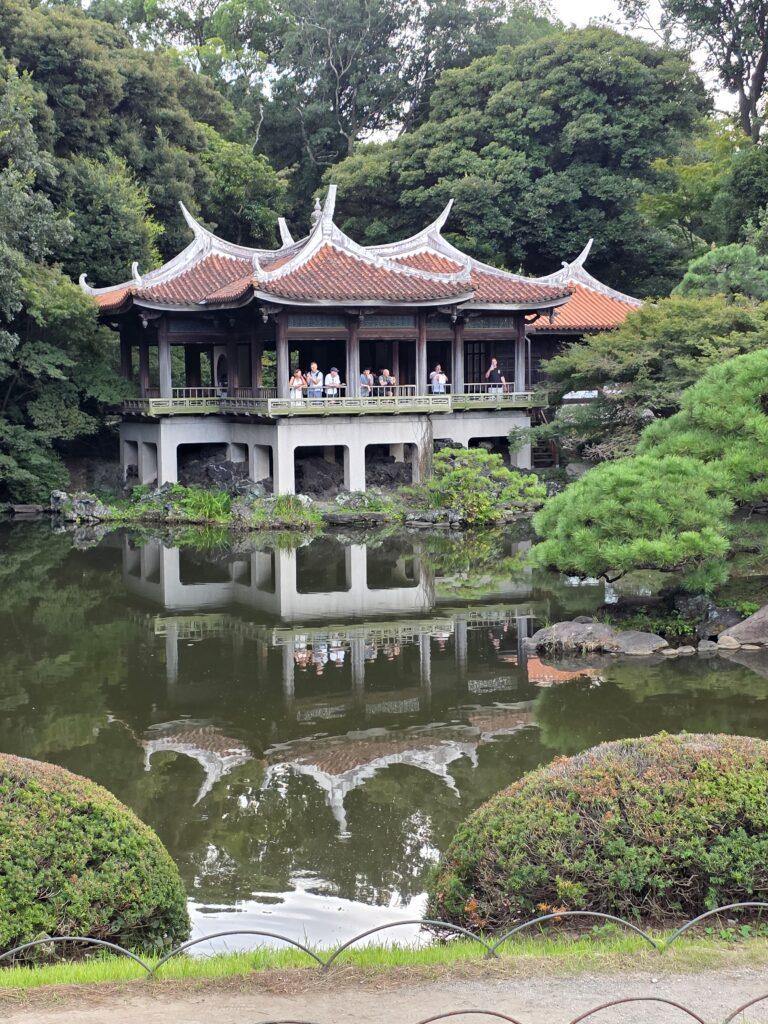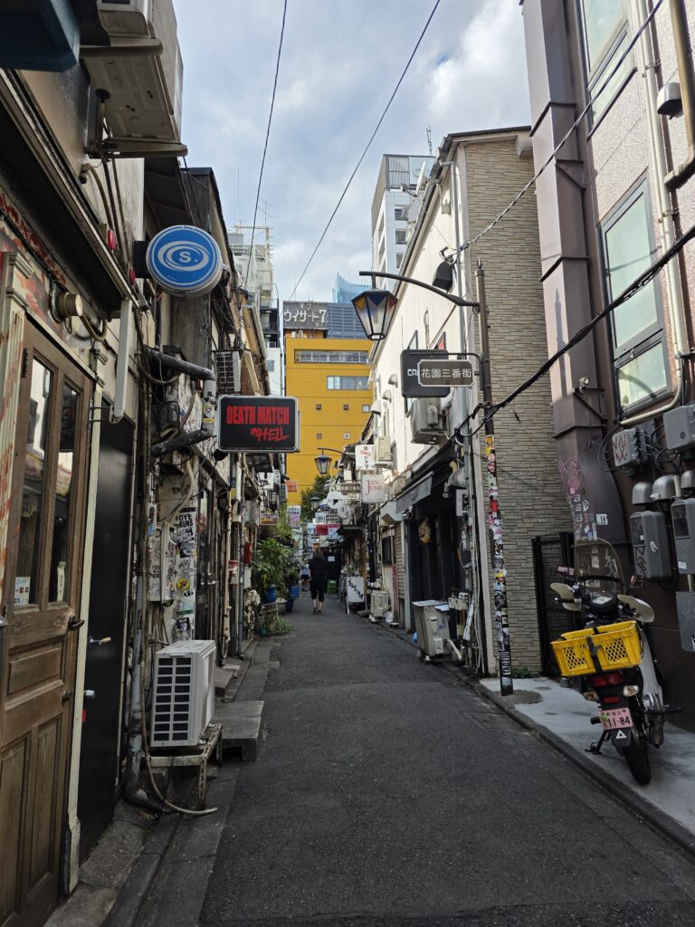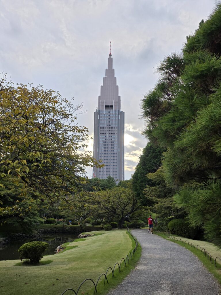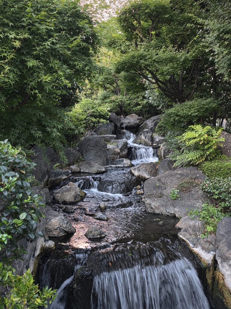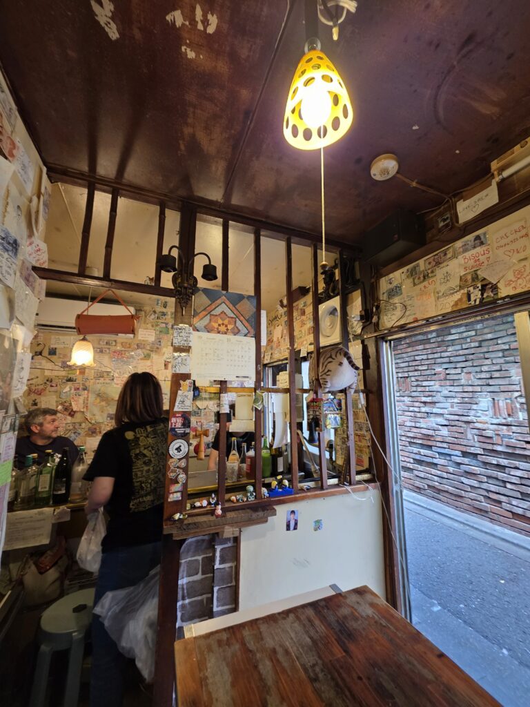 On the 24th I decided to take a walk along the Kanda River, which was also recommended to me by a friend. The pedestrian street along the river is the embodiment of peace and tranquility. There are many temples and parks all along the way. It also provided some much needed respite from the heat because it has been HOT! Upper 80s most days, sunny and SO humid! I continued down the river and made my way toward Black Duck Coffee in Shinjuku because it came highly recommended by several people. Unfortunately Google was wrong this time and it was closed. Maybe I’ll make it back at some point before we leave because I have found that delicious coffee is something Tokyo is very good at. Since it was closed, I did what you do in situations like that and I pivoted. I had been wanting to go to visit the Shinjuku Gyoen National Garden which is a huge beautiful park in Tokyo where the Naitō family lived in the Edo, the former name for Tokyo, period. You’ll hear more about the Edo period when I tell you about our visit to the Samurai and Ninja Museum. Since the garden is in the Shinjuku neighborhood I told Dave I would walk by the Golden Gai district that he has been wanting to visit. Golden Gai is a festive, popular city district famed for its narrow, winding alleys & numerous snug taverns. It is more popular at night but I did find one wee tavern called Bambi open and popped in for an Asahi (beer) and a Suntory (whiskey). I practiced a little Japanese with the woman who worked there before some fellow travelers joined and then made my way to the park. That will probably be my only visit to Golden Gai, since I haven’t been able to stay up much past 7pm, and I’m glad I checked it out.