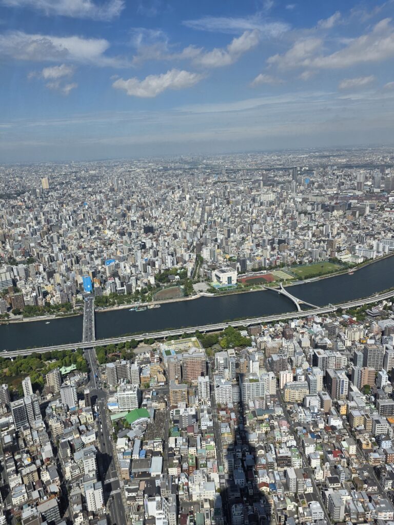 Last Thursday we went up the Tokyo Skytree, which is only a five minute walk from our apartment, and is visible from our front door. It was a pretty clear day and we even got a peep of Mount Fuji! The Skytree is the “tallest tower in the world” at 2,080 feet. We went all the way to the top and it was worth it. What a view!