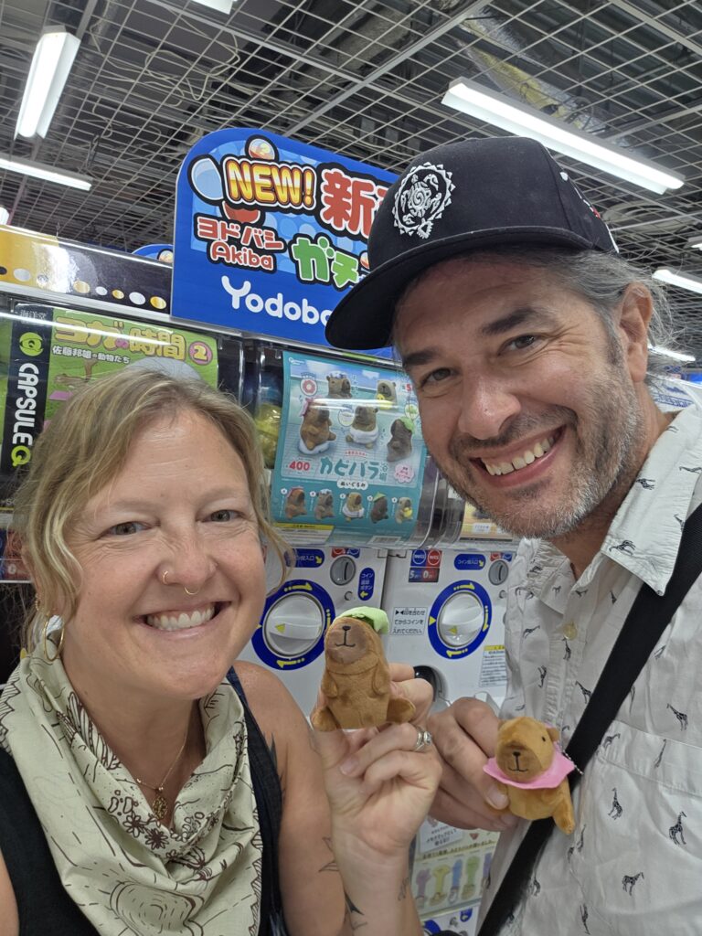One day last week we walked through Ueno Park to the Okachimachi neighborhood where there are tons of affordable and diverse shops and restaurants. That is where we discovered the restaurant Ramen Kamo to Negi. There was a line of people waiting to eat at 11am. You purchase your food from a machine outside the restaurant where you order from the small assortment of pictures, then you get a ticket and sit on one of the stools until someone comes and brings you inside to your table. The sign outside the restaurant touted that their duck broth is only made with duck, green onions, and water, and it was the richest, most delicious duck soup I’ve ever eaten. I’m drooling just thinking about it. In that same neighborhood we found a toy store that was seven floors filled with every toy you can imagine and many of the coin machines that you can find all over the city. As I mentioned, it has been very challenging not to buy all the things! Especially since there’s so much cuteness.