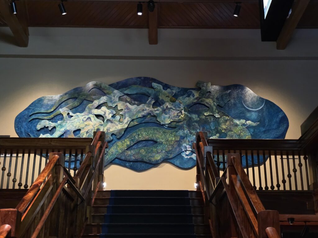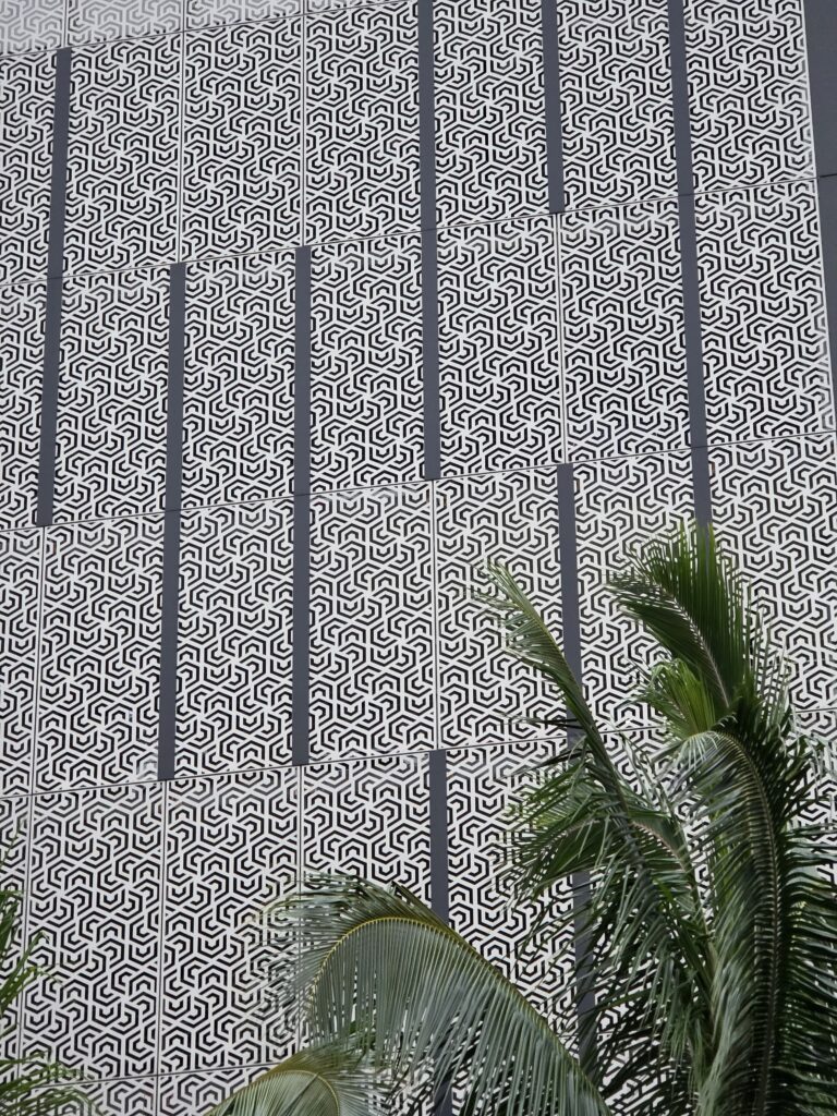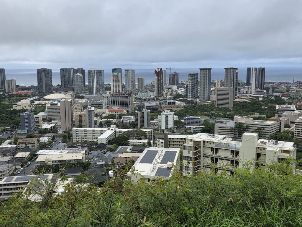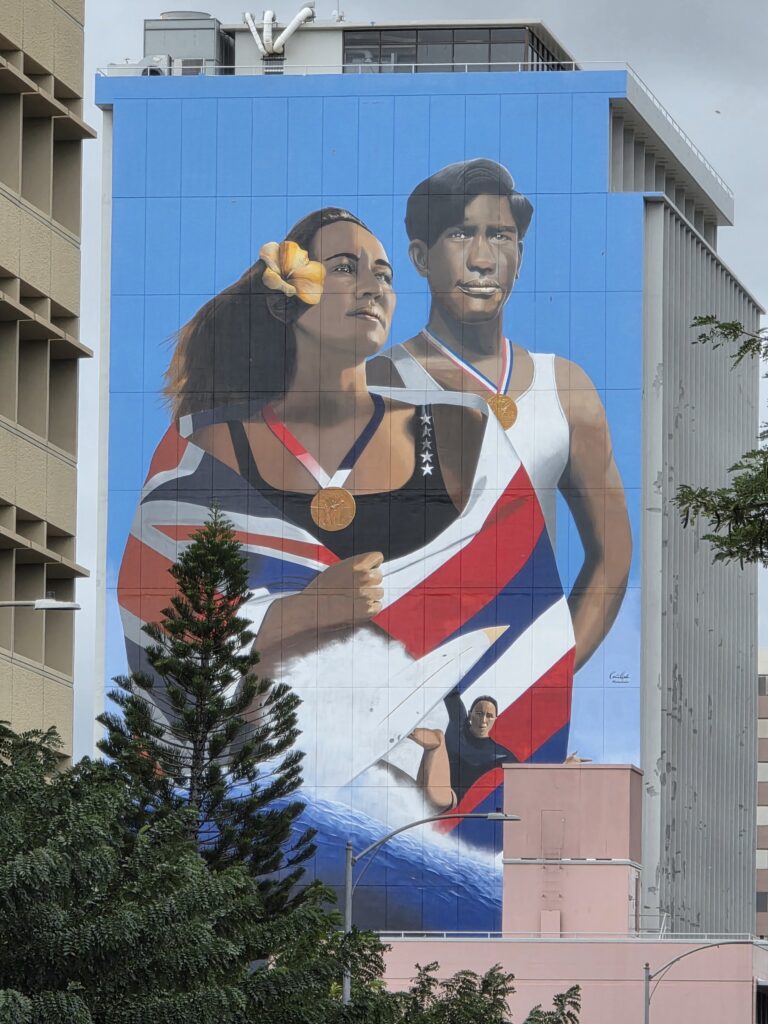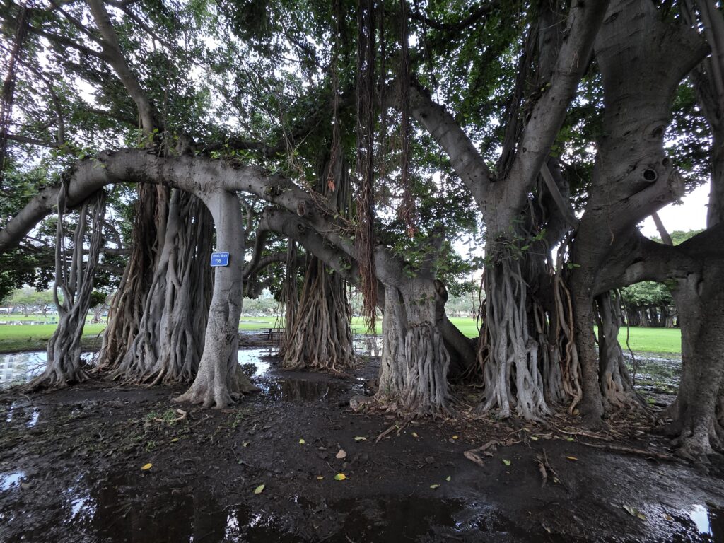 The second week I managed to get out before the rain for my morning walk everyday but Friday. It is unfortunate that Dave has to work until noon because the mornings were ok, as far as rain goes, but it seemed to rain every afternoon. Which I believe is pretty common in Hawaii this time of year, just not this volume of it. On Saint Patrick’s day they had a little parade down Kalākaua Avenue, which is one of the main thoroughfares through Waikiki that runs parallel to the ocean. It was fun to be able to go to Maui Brewing Company watch from the terrace that overlooks the avenue. The next day we took the bus to Foster Botanical Garden which was cool. We only had about an hour to explore and it was fun to learn about some of the trees that you can find in Hawaii. I started to get a little stir crazy by the 19th so I took the bus in the morning to the National Memorial Cemetery of the Pacific at Punchbowl Crater. I had never been and I heard that they have a good view overlooking Honolulu that I wanted to see. I got a little wet, and the view was somewhat obscured by clouds, and I’m still glad I went. I like visiting cemeteries in the cities that we visit and this one was beautiful. After I visited the cemetery it wasn’t raining too hard and I noticed that the Honolulu Museum of Art (HoMA), which I had also been wanting to visit, wasn’t too far of a walk away, so I went and did that. What a cool museum HoMA is. It “houses an encyclopedic collection of over 50,000 pieces, specializing in Asian art, American and European painting, and Pacific, African, and American traditional works. Highlights include significant Japanese woodblock prints, Korean ceramics, Buddhist sculpture, modern and contemporary art, and a vast collection of works on paper and textiles.” The building itself is also structurally beautiful with several different courtyards. If you’re ever in Honolulu I highly recommend a visit to this museum.