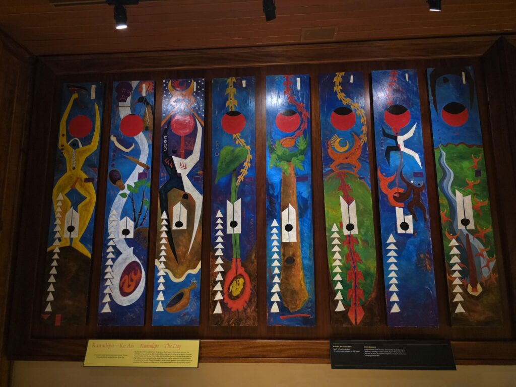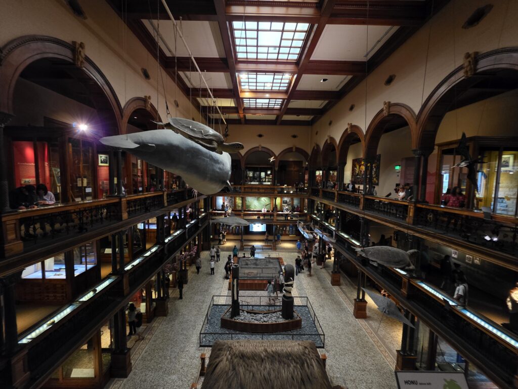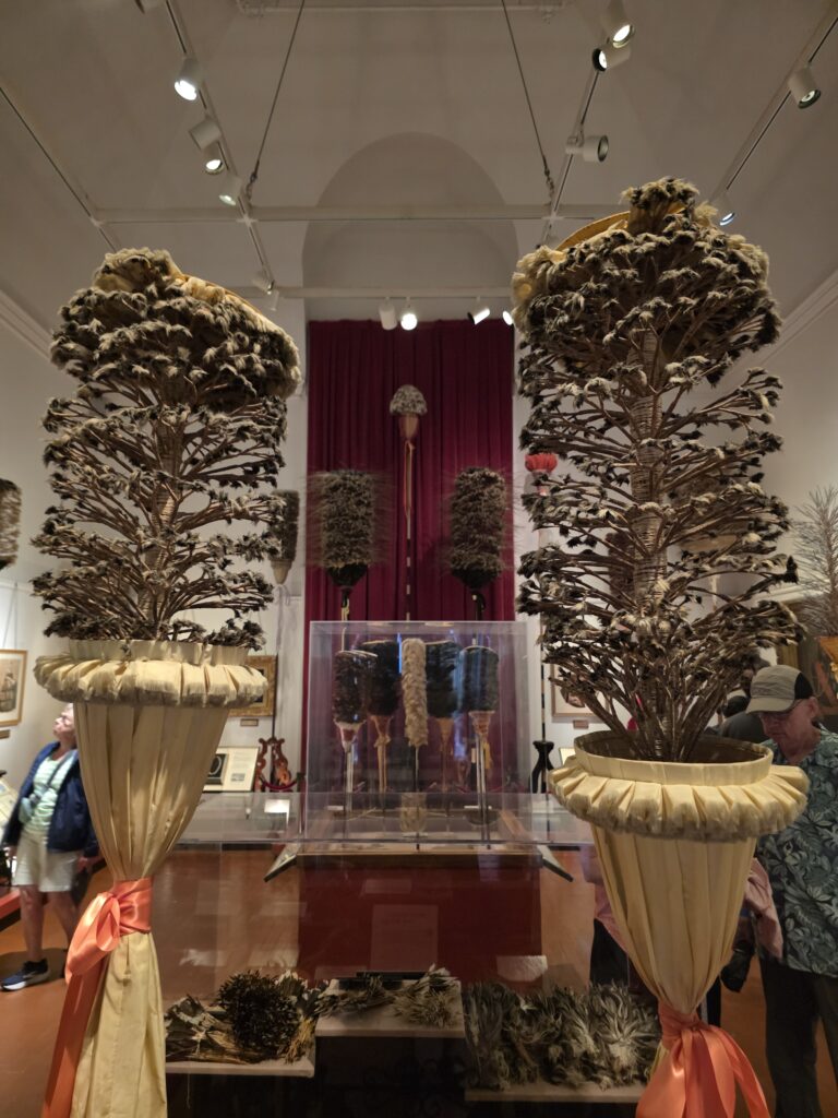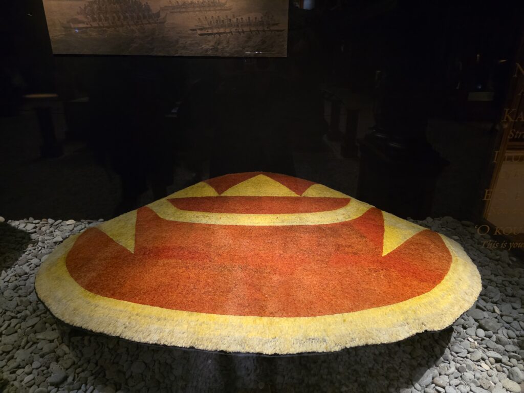 This is a Great Frigate bird like the ones found in Haleiwa. This is an example of how the citizens of Honolulu prepared for chemical warfare during WWII. It was at Hawaii Army Museum Society.This is the first U.S. Army helicopter designed to perform attack missions and initially flew in 1965.The view from the roof of the Hawaii Army Museum Society.Pacific Golden-Plover. Rose-Ringed Parakeet enjoying a little palm tree snack in the park outside of the museum. There were many events planned for the Honolulu Festival the weekend of March 14th, like parades and fireworks, that were unfortunately canceled due to the weather but it was fun to get a taste of it during a break in the rain. This is an image from the Waikiki Brewing Beer Festival that I thought would make my uncle proud. 🙂Cool murals and birds on a wire. The view from where the elevator stops at our Air BnB. It goes to the 12th floor and we’re on 14. Waiting in line to visit the Bishop Museum which is the premier natural and cultural history institution in the Pacific and the largest museum in Hawaii.Bishop Museum. What a cool space!This is part of a 16-panel artwork titled Kumulipo by Hawaiian artist Carl F.K. Pao. This is “beginning-in-deep-darkness” portion of the piece. This is the ‘ahu ‘ula (feathered cloak of Chief Kalaniʻōpuʻu.“Hawaiian Lunar Month” is very important to the lives of the Native Hawaiian people. This is “Hawaii” by Hawaiian artist Kaili Chun in the Kau Moana (Peoples of the Ocean Deep) room at the Bishop Museum. It was fun to see a visual of the “Polynesian Triangle” that we learned about while we were on the North Island of New Zealand. Mokuʻāweoweo Crater During Eruption of 1896 by David Howard Hitchcock. The Kāhili Room. “The Kāhili is a traditional Hawaiian royal standard, consisting of feathers on a staff, that symbolizes the presence, lineage, and high rank of aliʻi (chiefs).”Aloha Bricks ’26 at the Bishop Museum began with a recreation of the Royal Hawaiian Hotel created by Peter Roy Barti. It is interesting how many “brick” exhibits we’ve seen in our travels and I’m here for it!The Iolani Palace by Yusuke Yamana, HILUG.ʻIʻiwi. My goodness it would’ve been cool to see one of these in person! Humuhumunukunukuāpuaʻa. The state fish of Hawaii and no I cannot help you pronounce it. 🙂Kapa kuiki, Hawaiian quilt made by Kuahine Kamalau to commemorate Hailey’s Comet of 1910.Hawaiian Hawksbill Sea Turtle. One of my “dryer” morning walks through Kapiʻolani Regional Park with Diamond Head in the background.My first trip to Leonard’s for Malasadas (donuts). YUM!What better way to start a Saint Patrick’s Day parade than with bagpipes? Aloha Spirit. While enjoying a post parade beer at the International Market Place we were gifted this by an artist that just happened to be sitting across from us. Check out @tobikoproject on Instagram. A somewhat promising sunrise. The temple at the entrance to the Foster Botanical Garden. Where are we again? The Quipo tree originally from South America. This Red Powder Puff flower reminds me of something that you would see in a Dr. Seuss book. The Pride Tree of Honolulu. Wilhelmina Tenney Rainbow Shower Tree. Tower ‘Mystic Maze’ orchid, commonly known as a type of spider orchid. A fallen bloom from the Shaving Brush Tree. More Seussical magic!Hala Tree. “Nicknamed “walking trees” because their stilt-like aerial roots (ulehala) grow outward and downward, anchoring into the soil to support the tree and making it appear as if it is moving on legs. While they do not “walk” in the human sense, they can shift their position over many years, as new roots grow forward and older, rear roots die off.”Izumo Taishakyo Mission of Hawaii is a Shinto Shrine near Chinatown in Honolulu. The first views from the National Memorial Cemetery of the Pacific at Punchbowl Crater. Lady Columbia Statue built in 1964 to symbolize the sacrifices of American Armed Forces. Even though I got pretty sick of the rain by the end of it, it does create some dramatic views. Diamond Head from the Punchbowl Lookout. Honolulu and the ocean. A bloom of the Bottlebrush plant after a rain shower. The entrance courtyard at Honolulu Museum of Art. HoMA.This incredible sculpture entitled Hortensia by Jaume Plensa was as tall as me!“Looks Can Be Deceiving” by Noah Harders is made from Ula, Hawaiian Spiny Lobsters. “Ku’u Hae Aloha” (My Beloved Flag) Artist unknown. I’m sure you recognize this artist. “Water Lilies” by Claude Monet. And this Artist. “Wheat Field” by Vincent van Gogh. This cool piece is entitled “The Long Rain” by Yves Tanguy. How appropriate. 🙂Another Artist you might recognize. “Waterfall-No. III-‘Iao Valley” by Georgia O’Keeffe. I actually went to ‘Iao Valley, which is on Maui, back in 1994. These amazing ceramic vases were created by Toshiko Takaezu who “was an American ceramic artist, painter, sculptor, textile artist and educator whose oeuvre spanned a wide range of mediums, including ceramics, weavings, bronzes, and paintings.”Another one of the beautiful courtyards at HoMA.This hat came from the Philippines and is made of wood and glass beads. I thought it was unique. This piece which I thought was somewhat reminiscent of Picasso is created by Onchi Kōshirō and is part of his Lyrically Rebellious exhibition. This piece is entitled ” Lyric No. 23, 1952″These gigantic ceramic sculptures are known as “Dangos” and they were created by Jun Kaneko. They are in yet another courtyard at HoMA.More amazing creations by Toshiko Takaezu. These are all inspired by the Moon. “Gaea (Mother Earth)” Made from stoneware and found hammocks. This awesome piece is part from the Contemporary Art exhibition entitled Past Forward. The piece is “Colony (Young Laundry)” by Gaye Chan. “Hirebecca” by David Smith is made of welded and painted steel. An interesting metal screen. Sarong from J