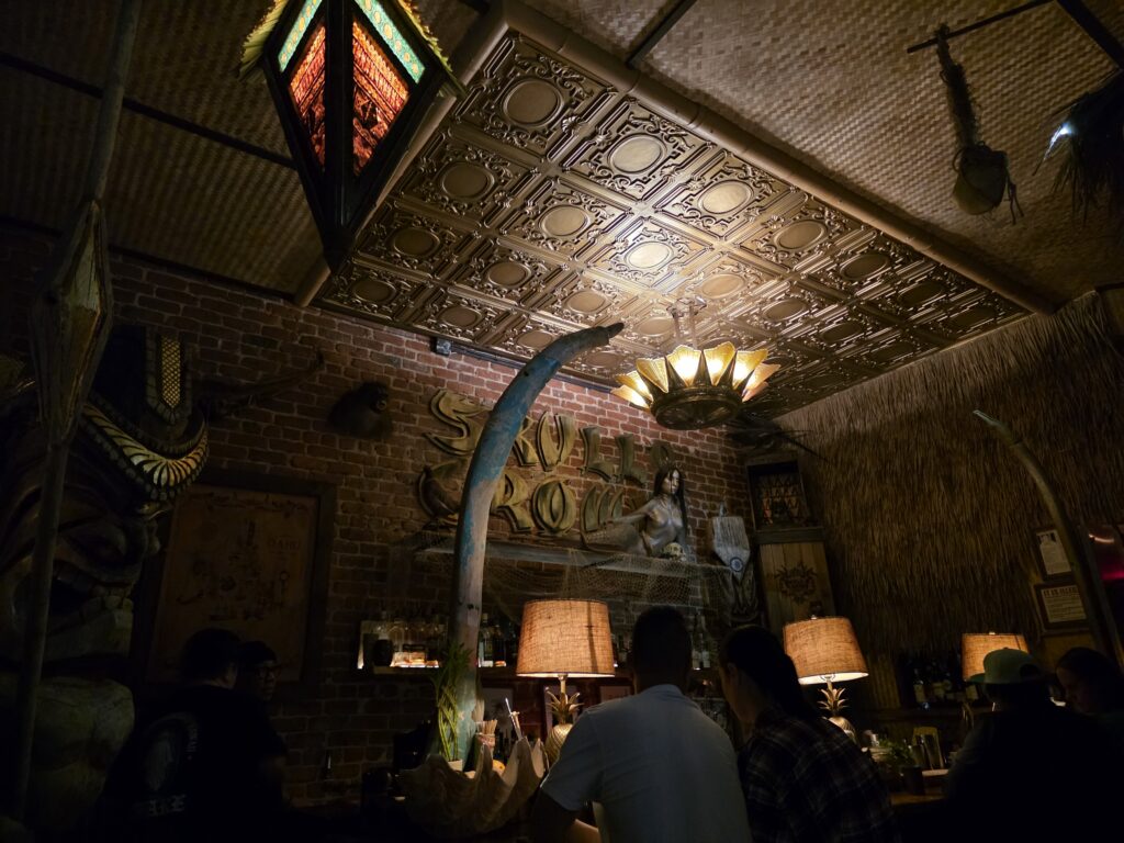This past weekend as I mentioned the deluge continued. We were supposed to visit Diamond Head for the first time but all the state parks were closed for obvious reasons so we decided to take the bus an hour and half to Kona Brewing in Hawaii Kai for lunch, just for something to do. Afterwards we visited Chinatown and met a new friend at Skull and Crown Trading Co. which is a Tiki Bar for a drink.